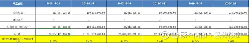 通过分的,我们可以得出,双汇的应收账款占总资产比例每年都小于1%,非常优秀;